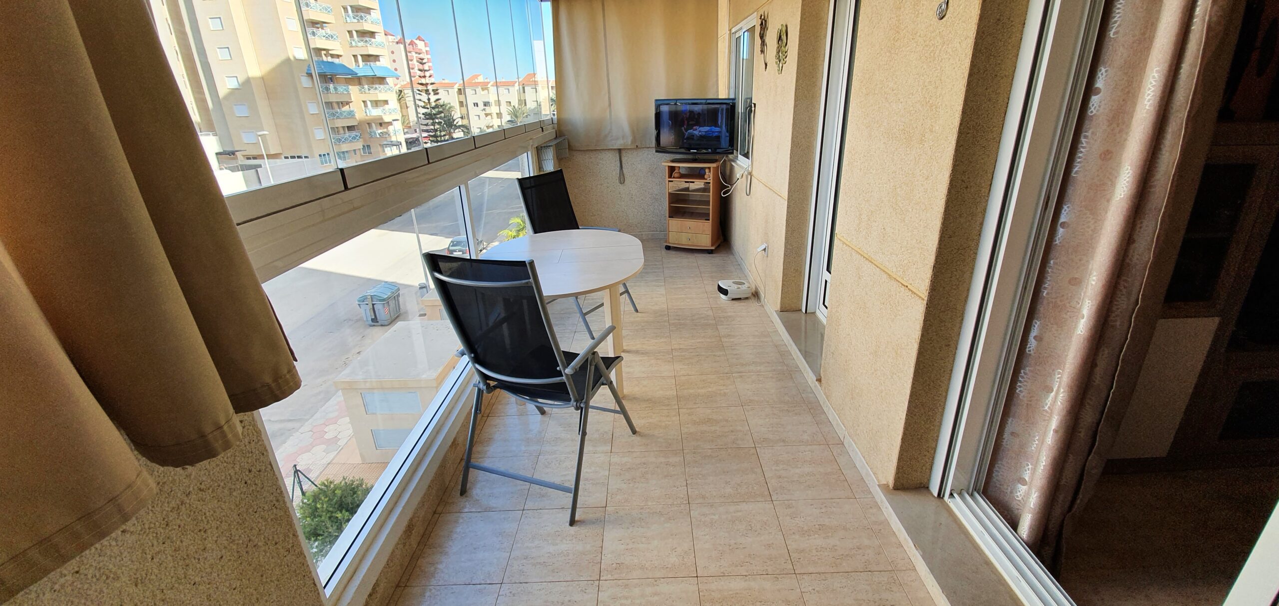 Bonito apartamento entre 2 mares con amplia terraza acristalada de 1 dormiotirio, 1 baño de 64 m2 . La vivienda esta situada en el km 14 de Gran Via de La Manga. Su ubicación estratégica permite disfrutar de las playas de ambos mares, siendo ideal para familias, niños y parejas con ánimo de disfrutar del aire libre y las actividades náuticas. Cuenta con piscina comunitaria para adultos y para niños. Zonas comunes, conserje todo el año, ascensor, servicio de limpieza y lavandería, internet, sistema de seguridad las 24 horas y parking privado.
