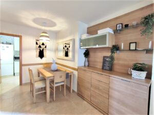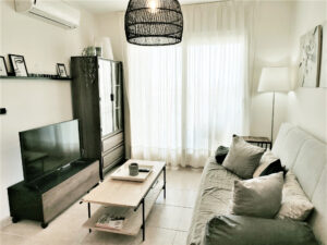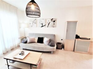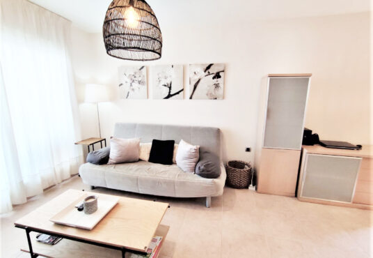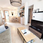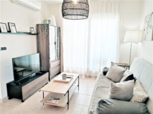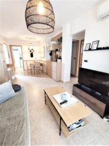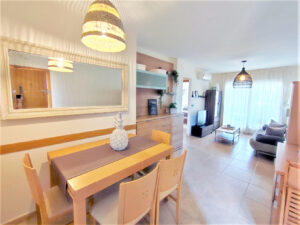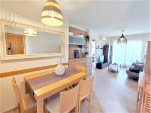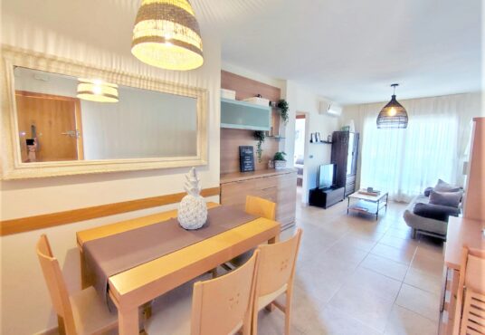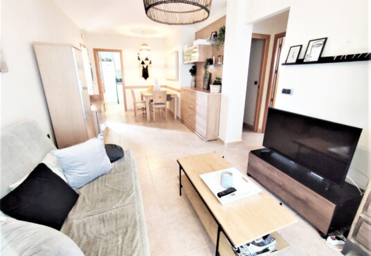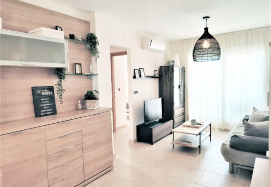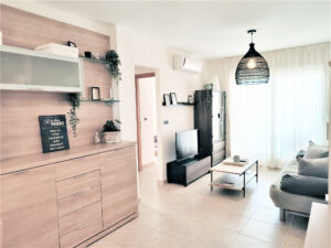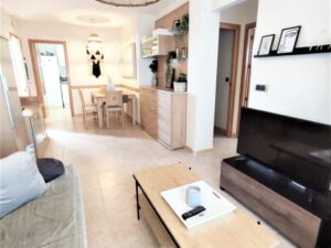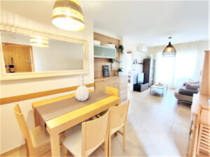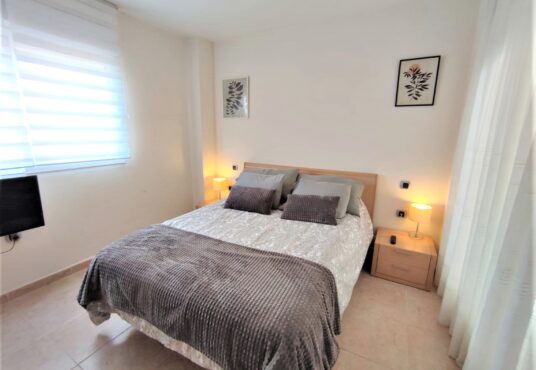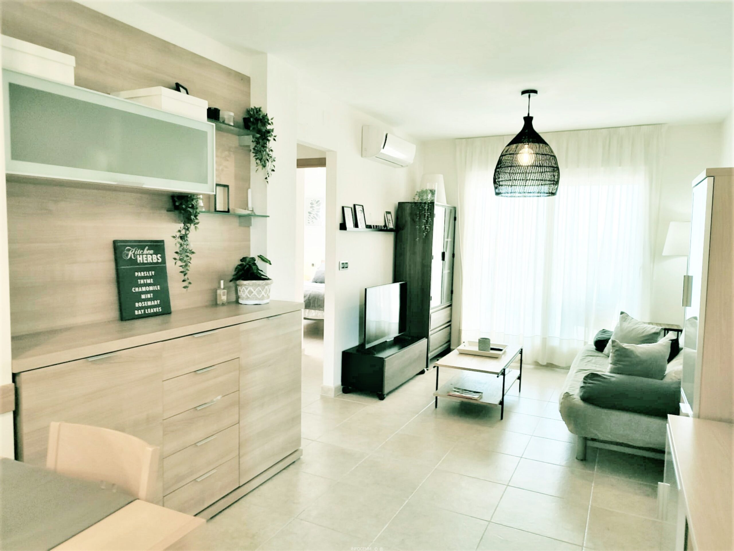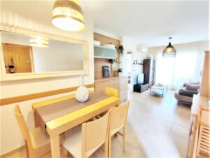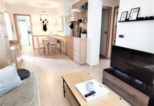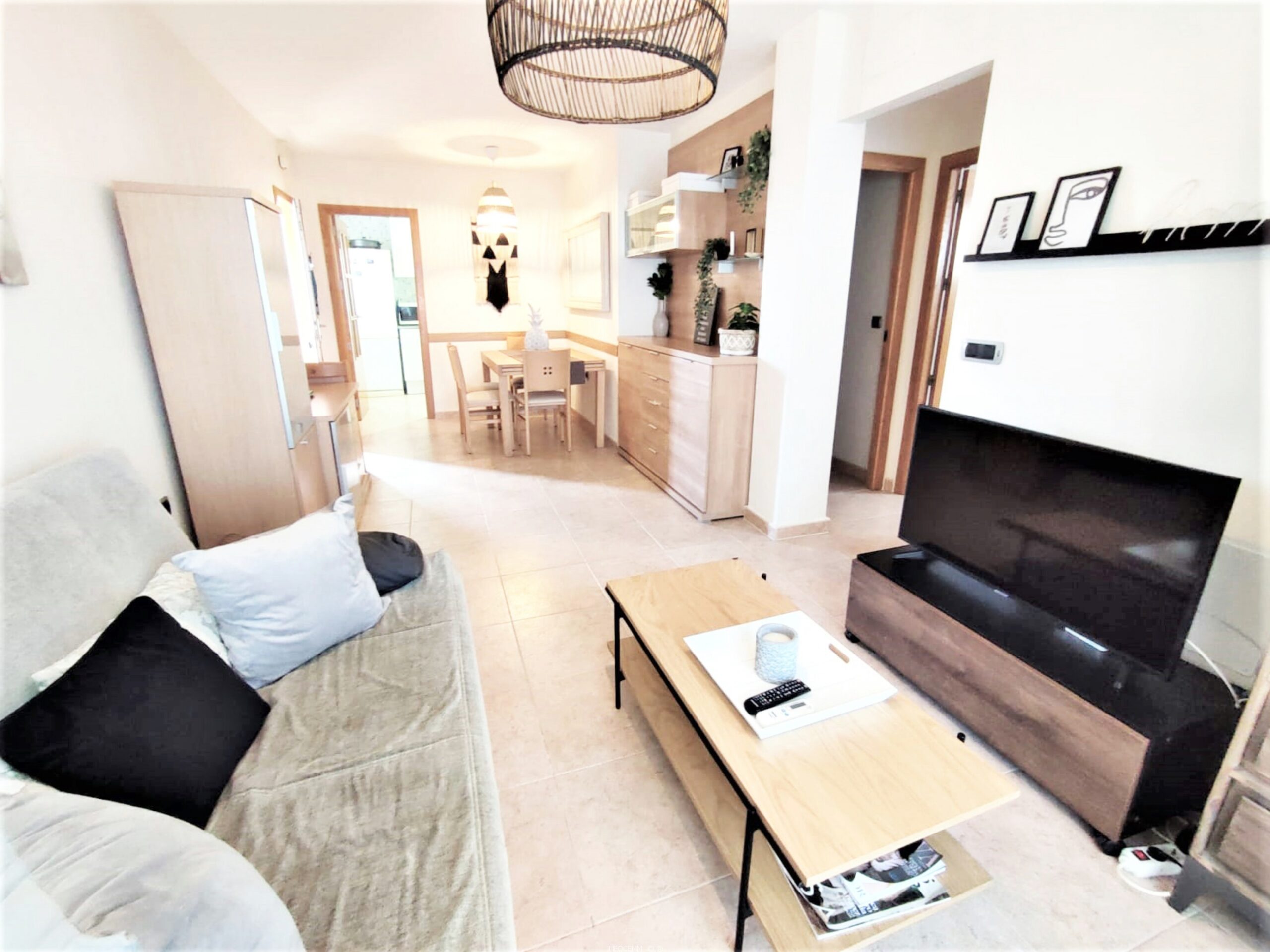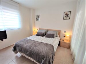 Bonito apartamento entre dos mares de dormitorios, baño, cocina independiente, plaza parking, pista de padel comunitaria. La vivienda cuenta con cocina actual y moderna, vitro, horno, extractor de humo, frigorífico, microonda, lavadora, tostadora, aire acondicionado, bomba de calor, TV.