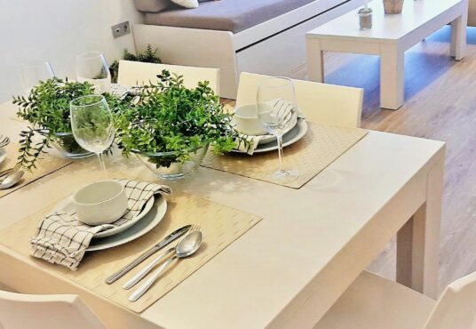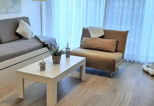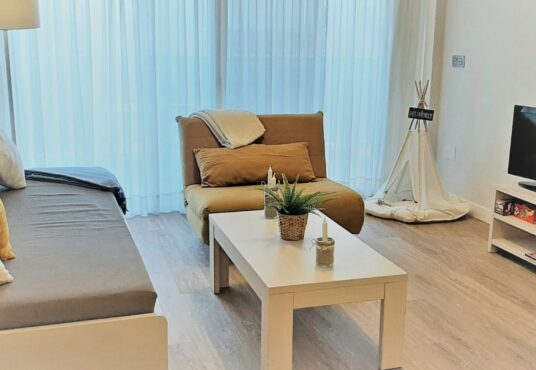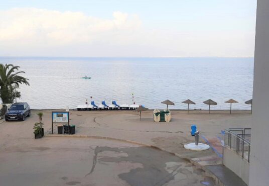 Magnifico apartamento en la orilla del Mar Menor. Tiene 2 dormitorios 2, baños, parking, piscinas de adultos y niños. Se encuentra en el km 17 de Gran Via de La Manga