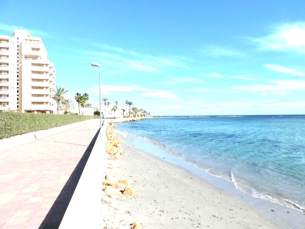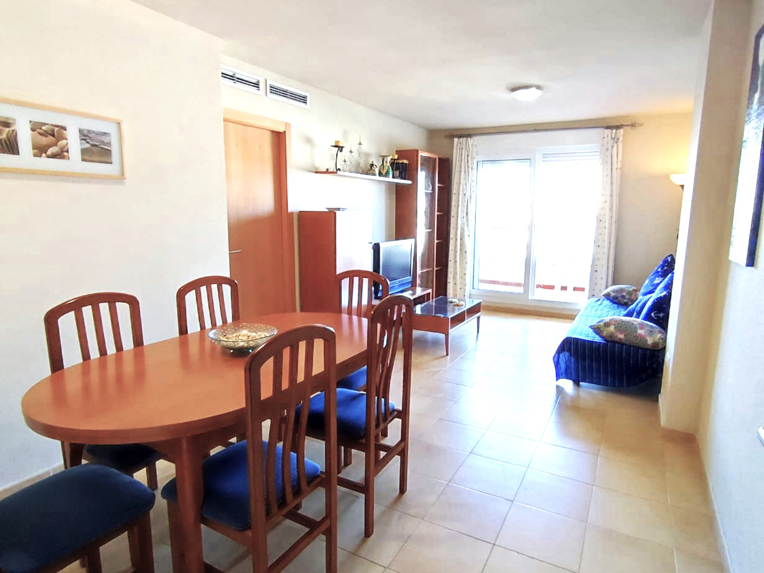 Bonito apartamento de 2 dormitorios, 2 baños en la orilla de Mediterraneo con terraza y plaza de parking subterraneo. Su ubicación estratégica permite disfrutar de las playas de ambos mares, siendo ideal para familias, niños y parejas con ánimo de disfrutar del aire libre y las actividades náuticas. Cuenta con dos piscinas comunitarias frente al Mediterráneo para adultos y para niños, con acceso directo a la playa. Zonas comunes, conserje todo el año, ascensor, servicio de limpieza y lavandería, internet, sistema de seguridad las 24 horas.